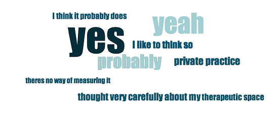 Similar trends in the therapist’s answers included the use of the words; safe, comfortable and confidential showing parallels to the therapy spaces Maggie’s Centre’s offer. 1/3 of participants stated that the relationship between the therapist and client is essential to the success of treatment, suggesting the design of a space has a limited affect.